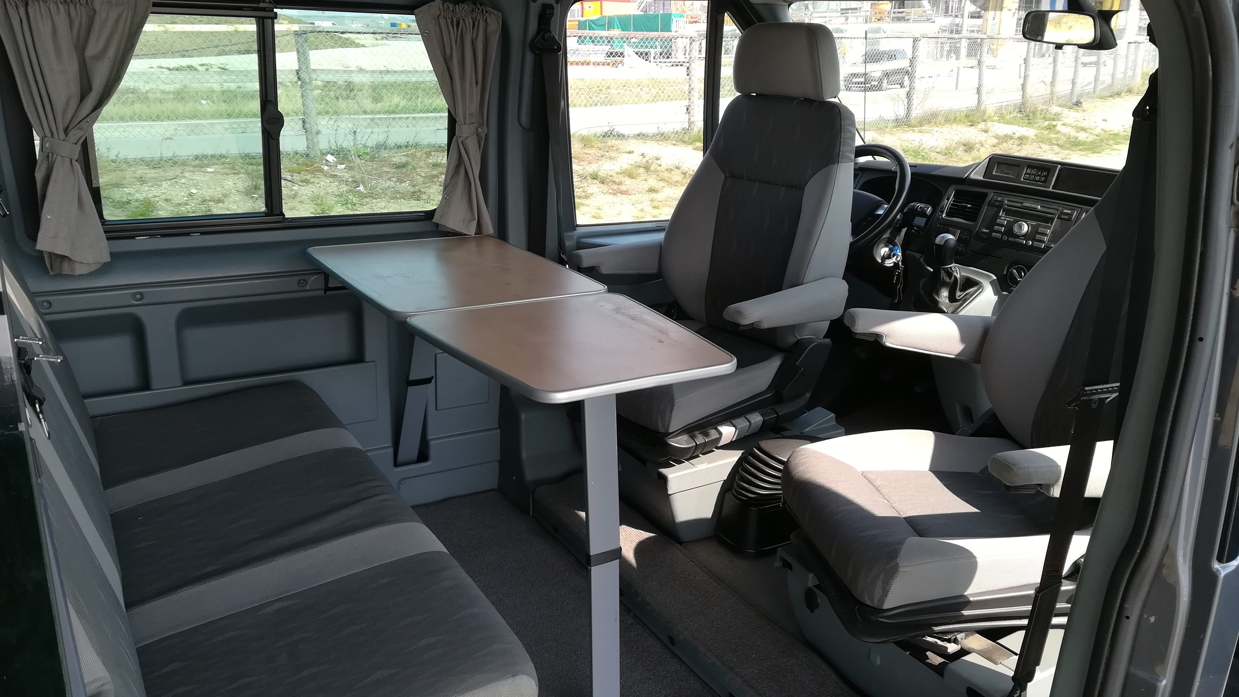 Beide Vordersitze lassen sich drehen, so dass man mit bis zu 5 Personen am Tisch sitzen kann.
